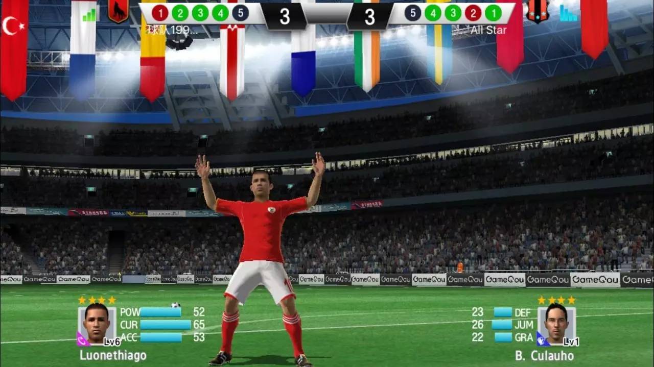 【何冬旭】全球上线的。它有中文版有英文版,这个游戏我们是全球上线,所以在中国叫实况点球达人,在国外叫Soccer Shootout,就是实况点球的一个英文。这个游戏现在在国外的德国、葡萄牙、俄罗斯的榜单都会比较靠前。
