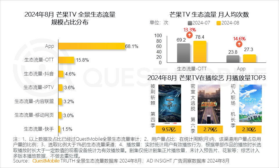 2、芒果TV凭借其在综艺内容制作上的强大优势,通过自制和联合制作综艺构建内容新生态,促进大、小屏端用户粘性增长