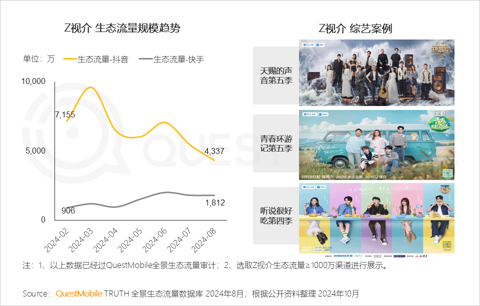 3、Z视介推出音乐类、真人秀综艺,节目中明星云集,吸引广泛的受众群体,促进生态流量-抖音、快手用户活跃