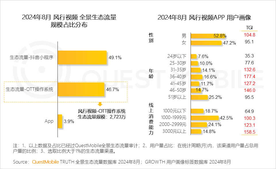 4、风行视频通过在新媒体端、 OTT端、APP端生态流量布局,实现内容全方位覆盖,吸引具有较高线上消费能力人群