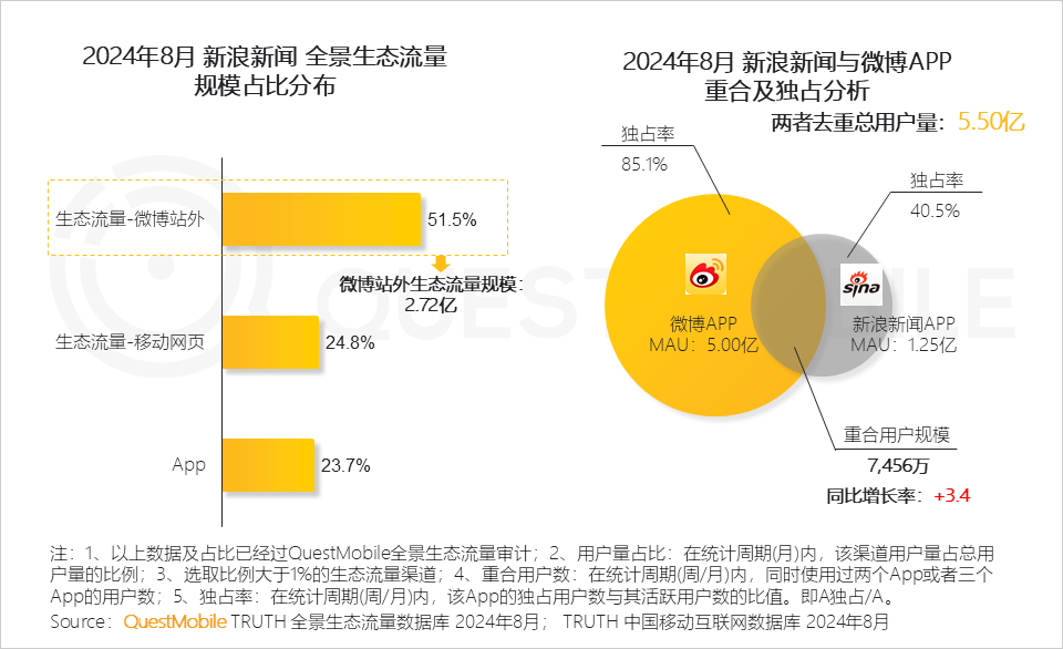 6、新浪新闻与微博实现内容生态的深度融合,带动新浪新闻在微博站外生态流量比例超50%,达2.72亿