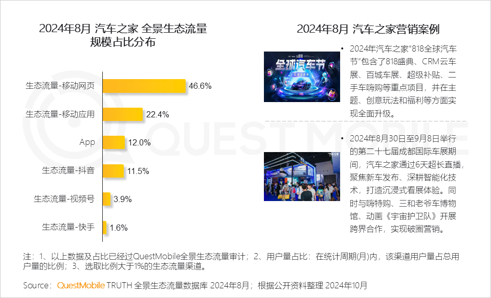1、移动网页和APP作为汽车之家流量主阵地,规模占比近70%,同时汽车之家通过行业盛典加强跨界合作,不断拓展新渠道触达广泛用户