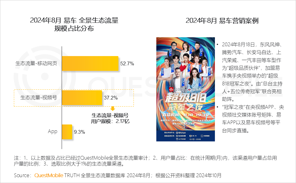 2、易车不断加深自身内容矩阵营销,还联合视频平台、车企共同打造“竞技体育+汽车科技”晚会,全方位点燃用户热情,吸引更多汽车爱好者和潜在用户的关注