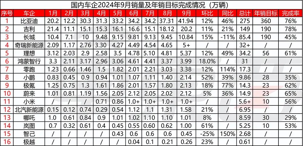 据此前车东西不完全统计,12家车企9月销量突破全年月销记录,9家新势力车企月销过万。