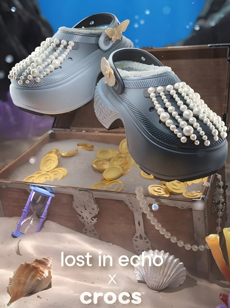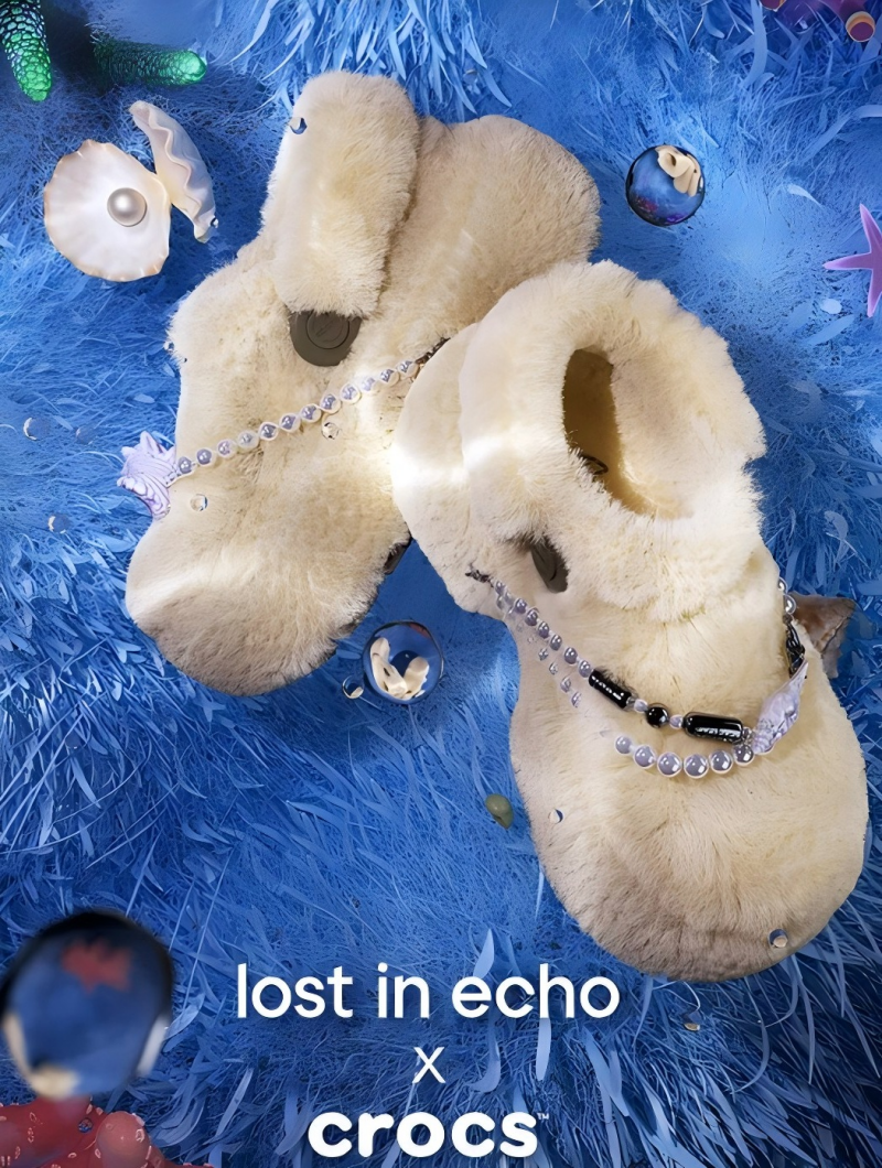 Crocs携手新锐鞋履品牌lost in echo推出全新联名系列。雪山和海洋相遇,摩登绒毛鞋体碰撞复古珍珠元素,展现洞门独特个性魅力。此系列包含两款洞洞鞋,珍珠绒绒洞洞鞋和珍珠暖棉洞洞鞋。