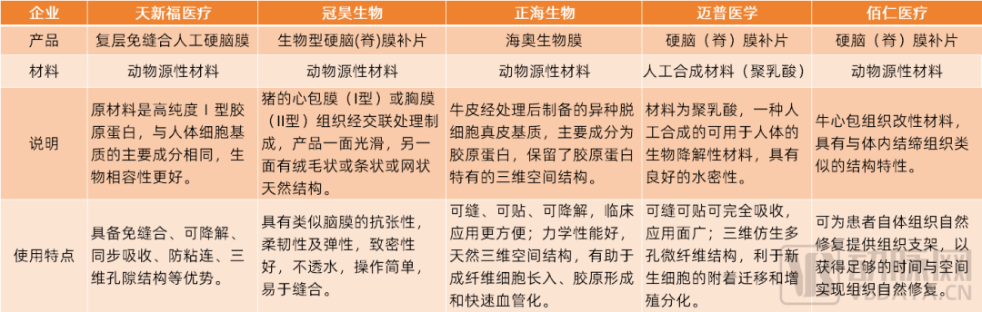 佰仁医疗则以牛心包组织改性材料为原材料的硬脑(脊)膜补片,其具有与体内结缔组织类似的结构特性,可为患者自体组织自然修复提供组织支架,以获得足够的时间与空间实现组织自然修复,使修复后的软组织与原健康组织无区别。