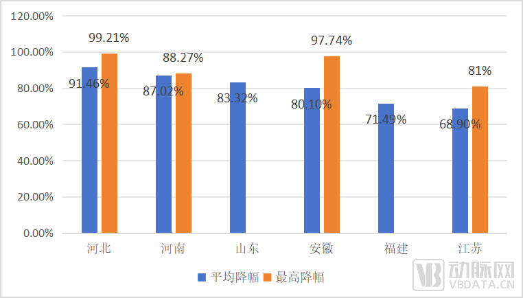 硬脑(脊)膜补片带量采购降幅统计,数据来源于易联智慧云