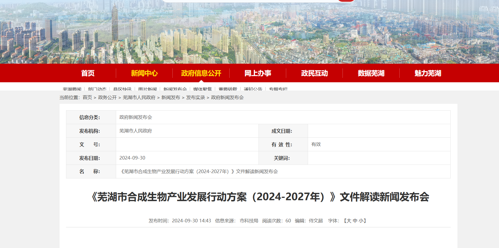 近年来,芜湖市在推进合成生物产业发展方面取得了显著进展。