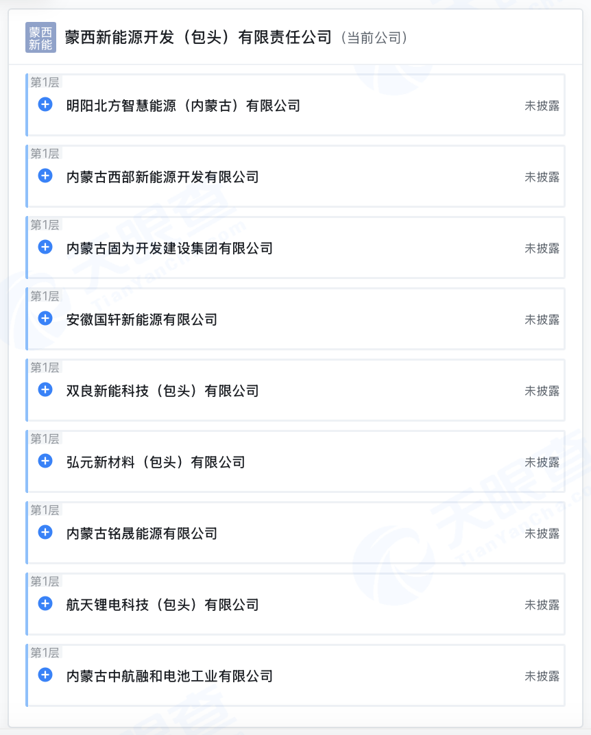 天眼查APP显示,近日,蒙西新能源开发(包头)有限责任公司成立,法定代表人为李中宁,注册资本10亿元,经营范围包含:站用加氢及储氢设施销售;高性能有色金属及合金材料销售;有色金属合金制造等。天眼查股权穿透显示,该公司由弘元绿能旗下弘元新材料(包头)有限公司、明阳智能旗下明阳北方智慧能源(内蒙古)有限公司、国轩高科旗下安徽国轩新能源有限公司、双良节能旗下双良新能科技(包头)有限公司等共同持股。
