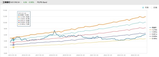 从历史PB分布来看,以工商银行和招商银行为例,工行的市净率在2015年和2018年都曾达到过历史峰值,那时的市净率在1.2倍左右。招行的市净率在2018年和2021年达到过历史峰值,那时市净率在2倍左右。仅就估值而言,工行和招行距离历史估值的高点仍有接近一倍的涨幅空间。