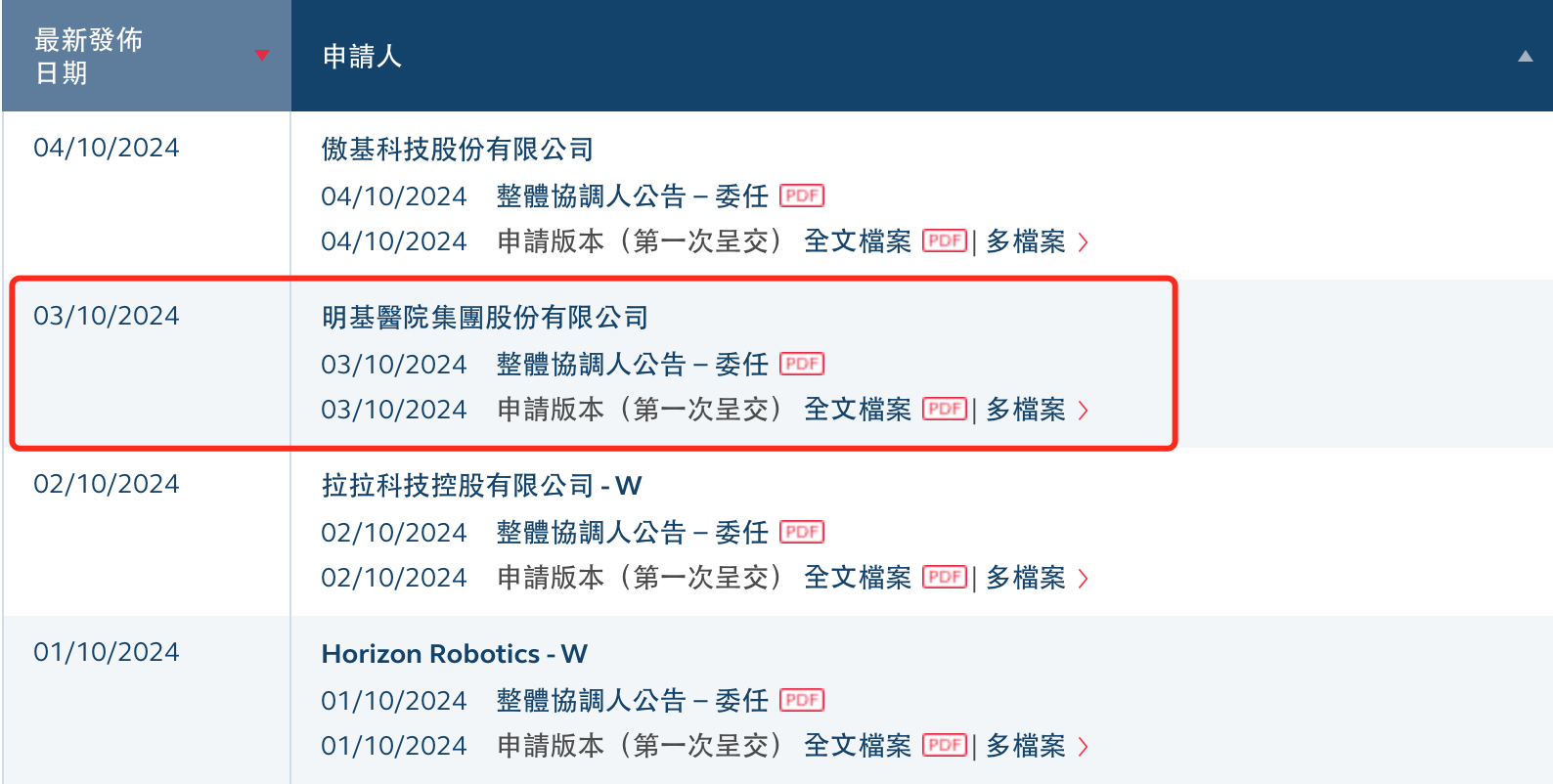 国庆节期间, 华东地区最大的民营营利性综合医院集团明基医院再次向港交所递交招股书,拟在香港主板挂牌上市。