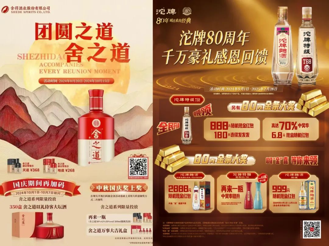 虽然平台补贴力度不大,但酒企却没有轻视国庆线上营销。舍得在“中秋奇妙游”活动的基础上再度加码,在国庆期间推出了扫码抽奖等活动,奖品包括5天4晚海上丝绸之路文化之旅、2万元现金红包、限时投放价值9999元定制金条等。