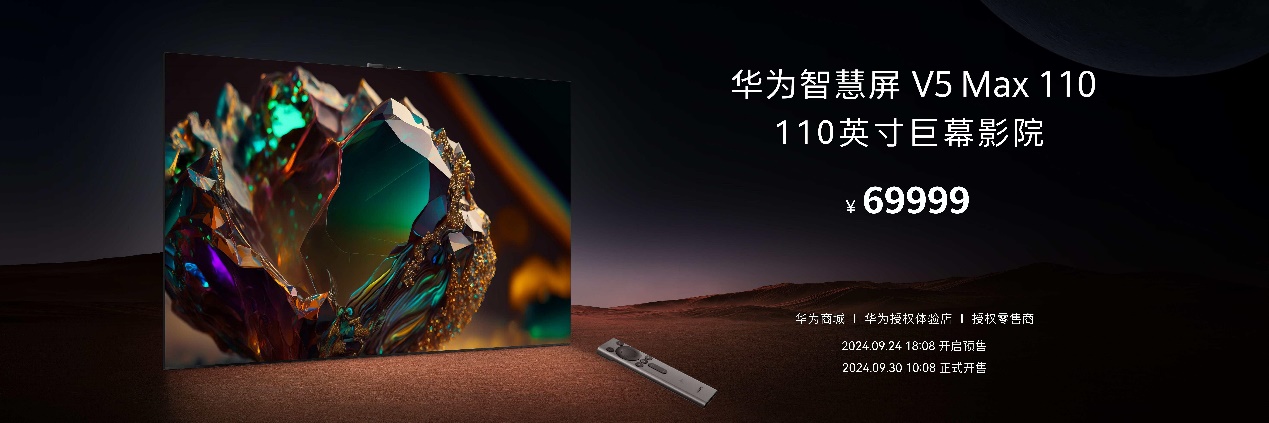 华为智慧屏 V5 Max 110于9月30日10:08点正式开售,售价69999元。用户可登录华为商城及各大授权电商平台或前往华为体验店、华为授权零售门店进行选购,尽享百寸非凡“巨幕手机”新体验。