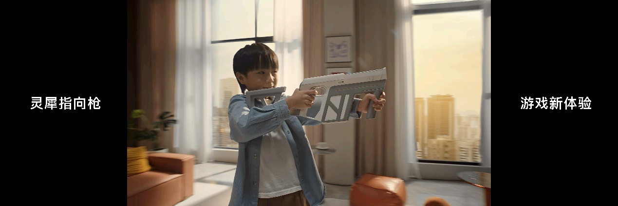 华为全球首创灵犀指向遥控,改变了电视只能用来“看”的传统使用场景,为用户带来了“刷电视、玩电视”的全新体验,掀起了电视行业的交互革命。作为华为首款超百寸“巨幕手机”,华为智慧屏 V5 Max 110支持华为灵犀指向遥控,通过UWB实现了使用遥控器远程在屏幕上实现滑动、点按、拖拽、圈选、跳选等手机上才有的操控体验,像玩手机一样玩转百寸大屏电视。基于华为灵犀指向遥控的精准指向技术,华为还联合游戏厂家开发了灵犀指向枪配件和射击游戏,让用户通过华为智慧屏 V5 Max 110足不出户就可以更加沉浸地享受游戏乐趣。
