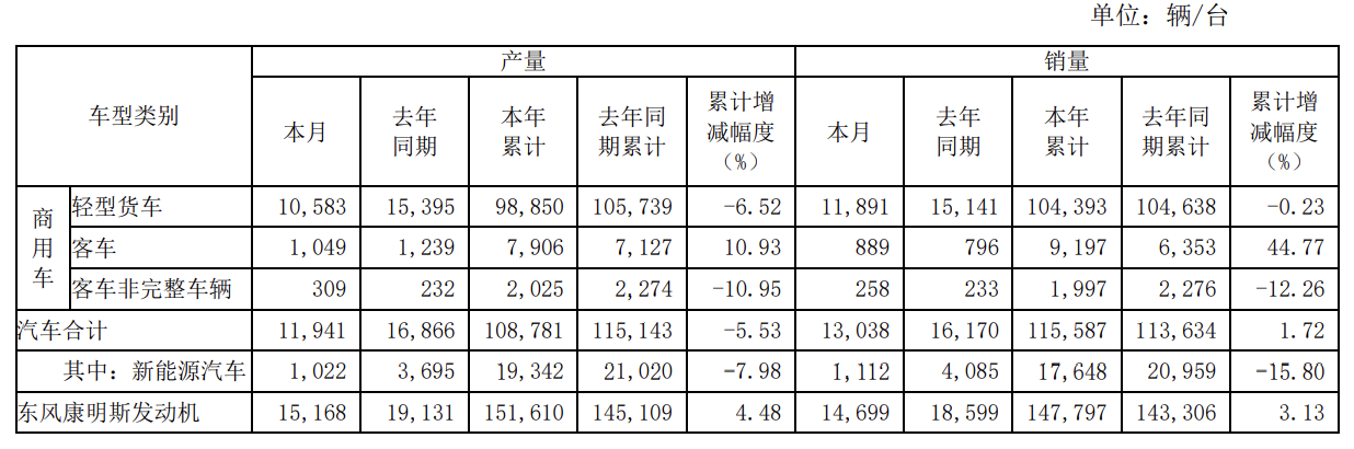 东风股份10月10日公告,9月汽车销量合计13038辆;本年汽车累计销量11.56万辆,同比增长1.72%。其中,9月新能源汽车销量1112辆;本年新能源汽车累计销量17648辆,同比下降15.80%。