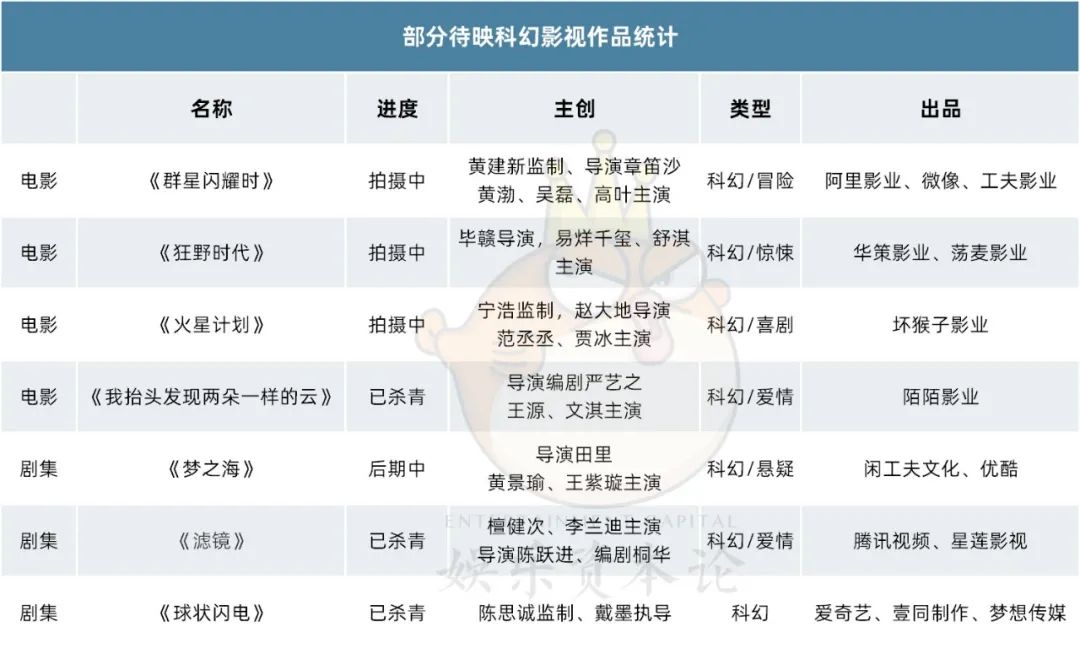 一个可预见的未来是,未来一至三年内,至少有7部科幻电影和剧集待映(已杀青或拍摄中)。