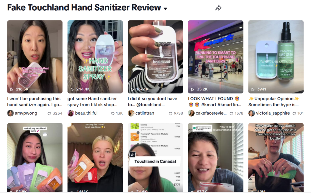 当Touchland的手部消毒液在网上走红后,该公司首席执行官安德莉亚·利斯博纳(Andrea Lisbona)注意到,大量外包装与该公司产品相同的冒牌货在亚马逊上激增,其中一些甚至直接借用了其品牌的摄影作品,只是抹去了Touchland的商标。