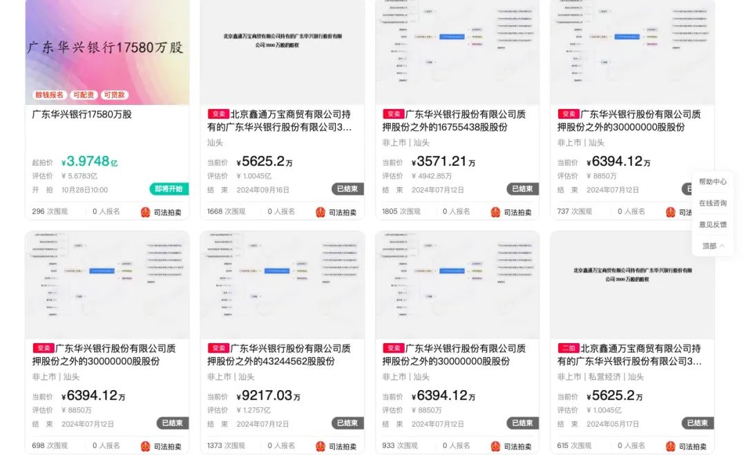 阿里司法拍卖平台显示,广东华兴银行股份有限公司(以下简称“华兴银行”)约1.76亿股股份将于10月28日首次拍卖。