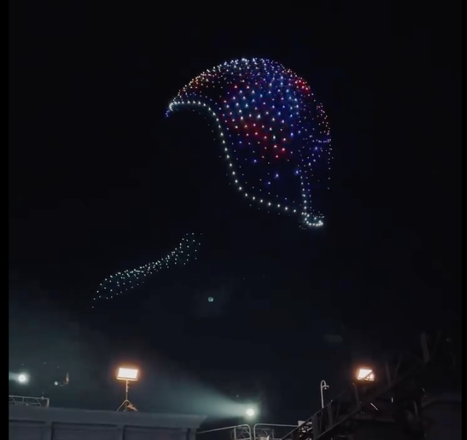 他们还在现场举办了盛大的无人机表演,不知道供应商是否来自中国。无人机群先后摆出特斯拉的 logo、Tesla Bot 机器人以及 We Robot 的字样,引得现场人群发出一阵阵欢呼。
