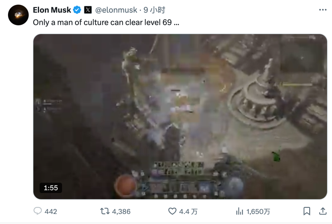 三个小时之前,他似乎还在玩《暗黑破坏神》,在社交平台上上传了一条通关 69 级的游戏录像。评论区中有人提醒他说,“别忘了今晚你还有一个演讲,埃隆。”