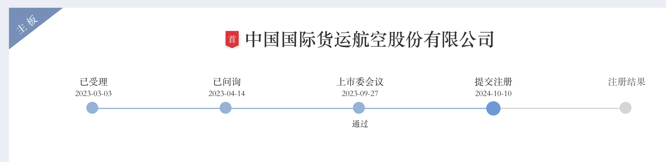 深交所网站显示,国货航2023年3月3日获得深交所受理,2023年4月进入问询环节,2023年9月27日过会,直到2024年10月10日才提交注册。