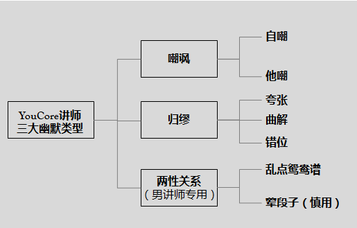 具体怎样才能在开场时幽默呢?方法挺多,咱们YouCore总结了一个3大幽默类型的框架,分享出来供参考(哎,连幽默都有套路,框架真是无处不在)。