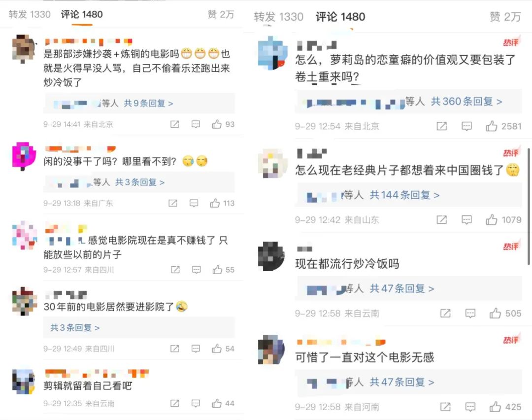 在公布重映消息之后的社媒平台上,不少国内网友的反馈并不如预期中那样呈现为影迷群体的狂欢,而是对“割韭菜”的质疑以及对经典影片“经典性”的怀疑。在这个解构主义盛行的时代里,或许经典的魅力本就是存疑的。