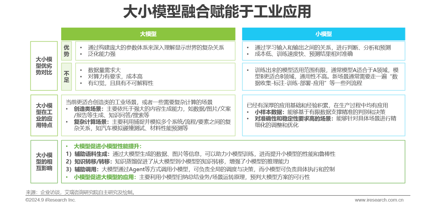 工业大模型与工业专用小模型并存,且是协同融合赋能工业应用的关系