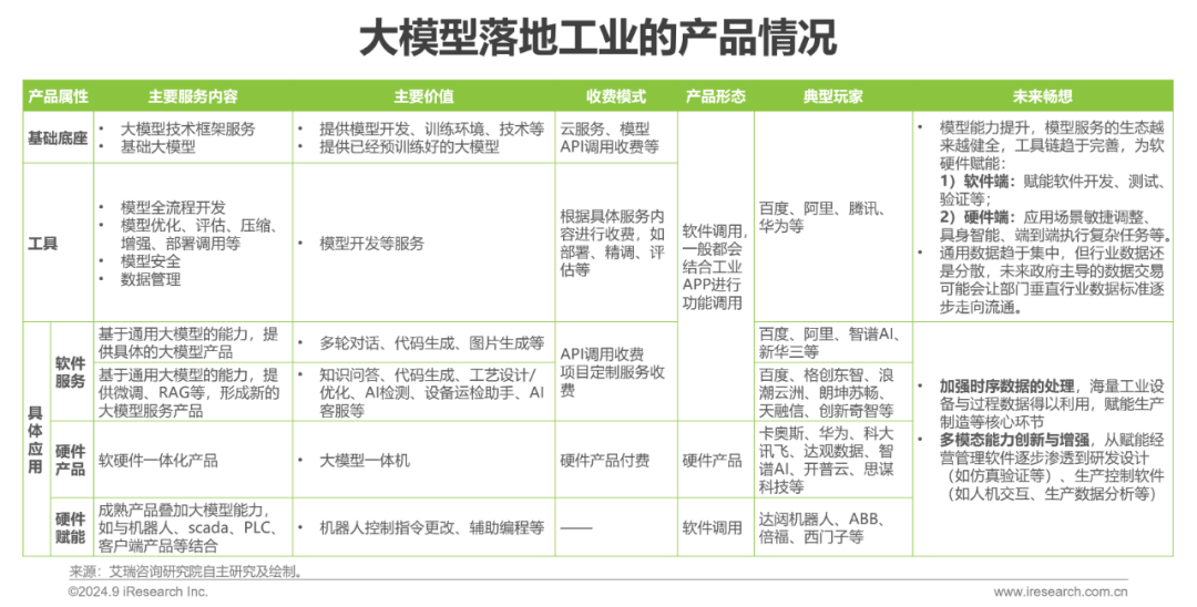大模型落地工业时主要以软件为主,但具体产品形态还在摸索中