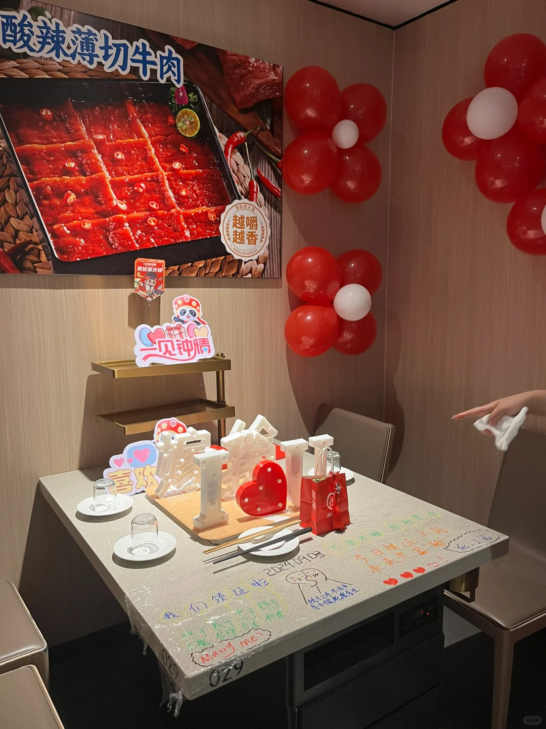 社交媒体上,就有贵州的网友发帖回忆称,她今年领证后就直接在海底捞预定了餐位,并表示海底捞贴心的服务让她回忆满满。“到店后,就看见桌面用彩笔写着“我们领证啦”的祝福语,还专门放置了心形气球、花篮等装饰品,还送上了一套草莓熊联名碗套装”。
