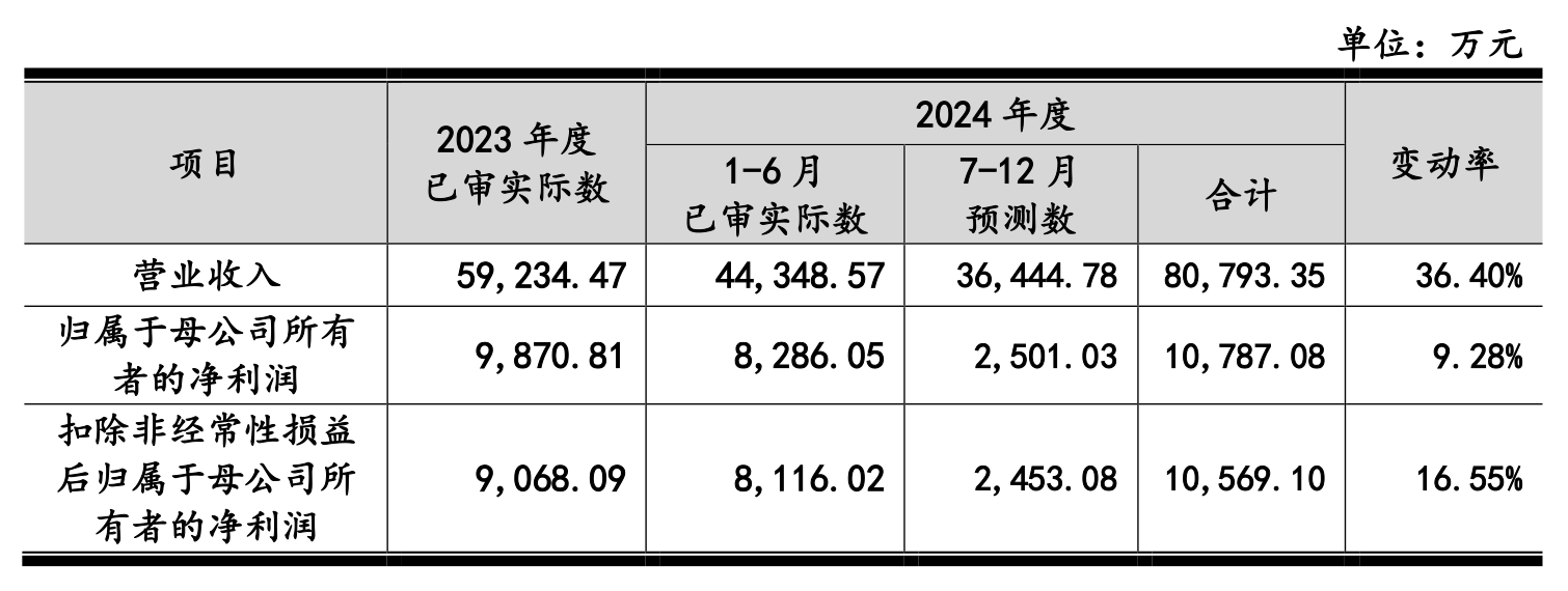 公司2023年营业收入5.92亿元,净利润9870.81万元,2024年上半年营业收入4.43亿元,净利润8286.05万元。公司预测2024年全年营业收入8.08亿元,净利润1.08亿元。而2022年公司营业收入和净利润数据分别为8.13亿元和1.31亿元,2023年公司业绩出现大幅下跌,2024年企稳。