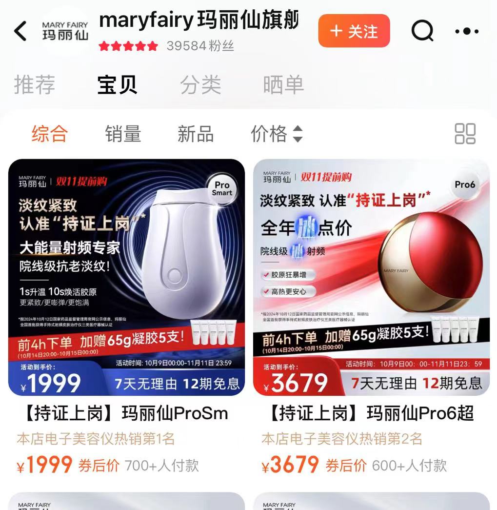 10月12日,界面新闻发现,作为首批获证的玛丽仙品牌,在获得认证当天就疑似将注册证用于多个产品的宣传。在玛丽仙的淘宝旗舰店页面,玛丽仙ProSm和玛丽仙Pro6两款产品均标榜“持证上岗”。
