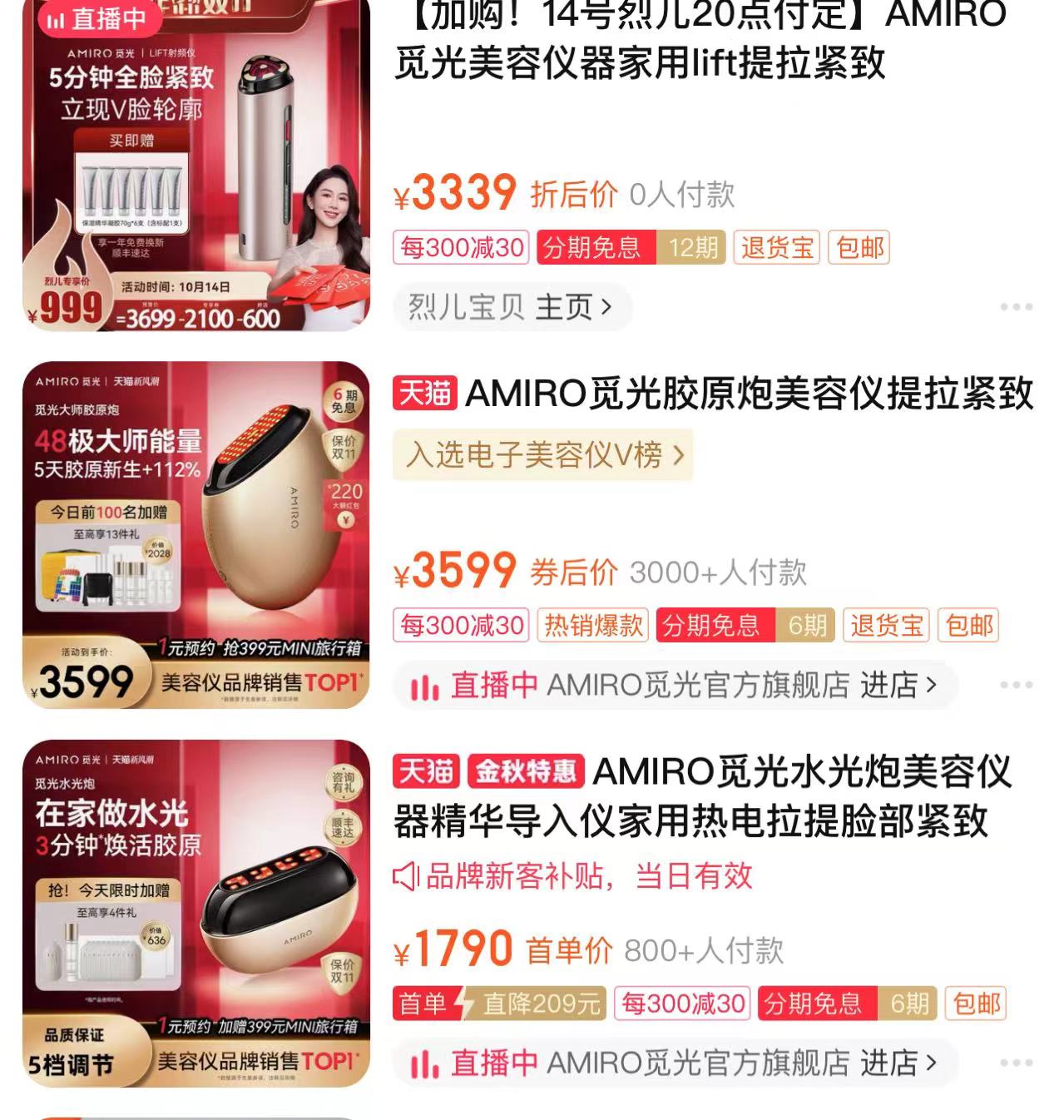 此前,30号公告落地进入倒计时,家用射频美容仪出现了“跳水式”直降、“腰斩式”打折。降价风暴中,曾经炙手可热的家用射频美容仪普遍降价幅度达到了50%以上,甚至有的产品降价幅度高达80%,数千元的美容仪,只需几百元就能入手。