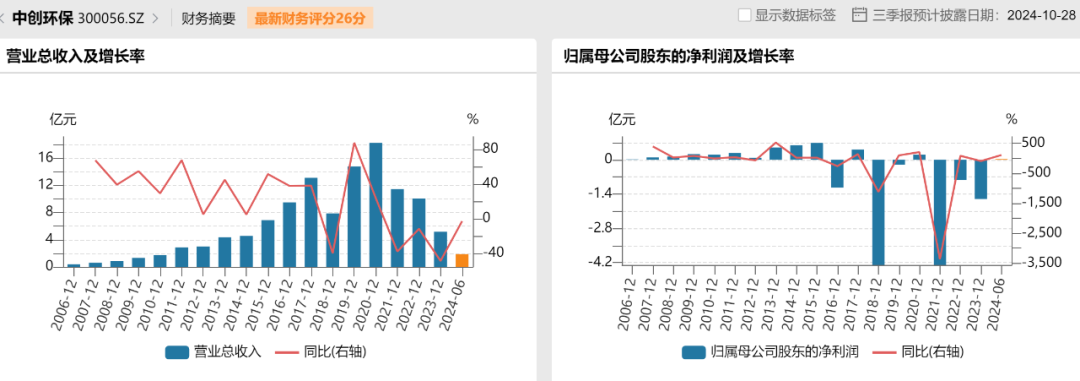 不过,进入2024年,中创环保业绩开始好转。2024上半年,中创环保实现营业收入1.86亿元,同比下降2.92%;归母净利润302.93万元,扭亏为盈。
