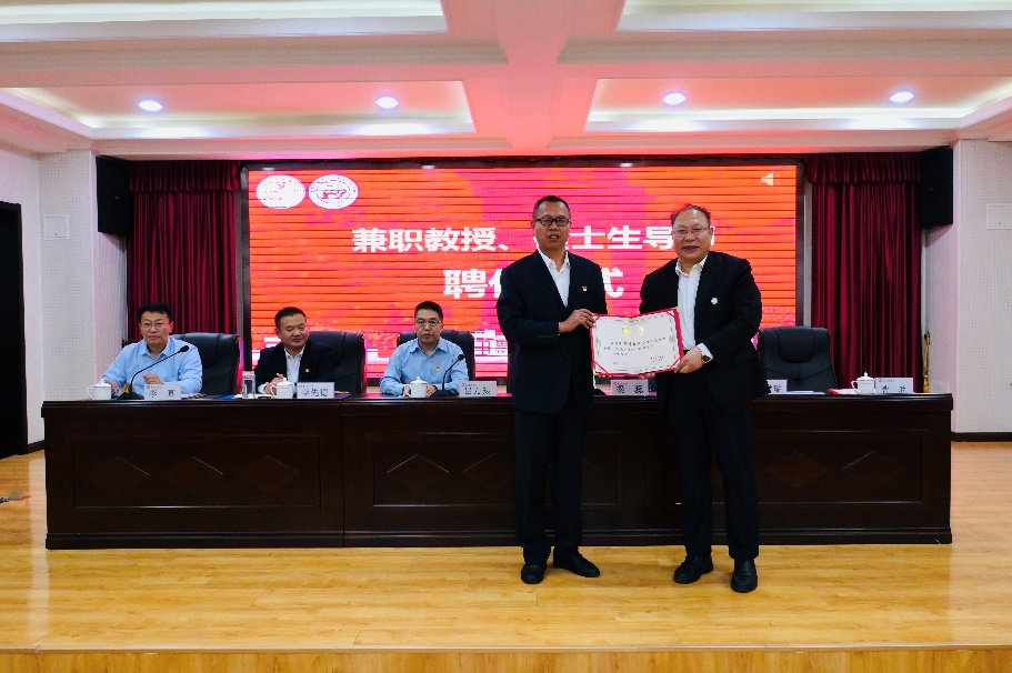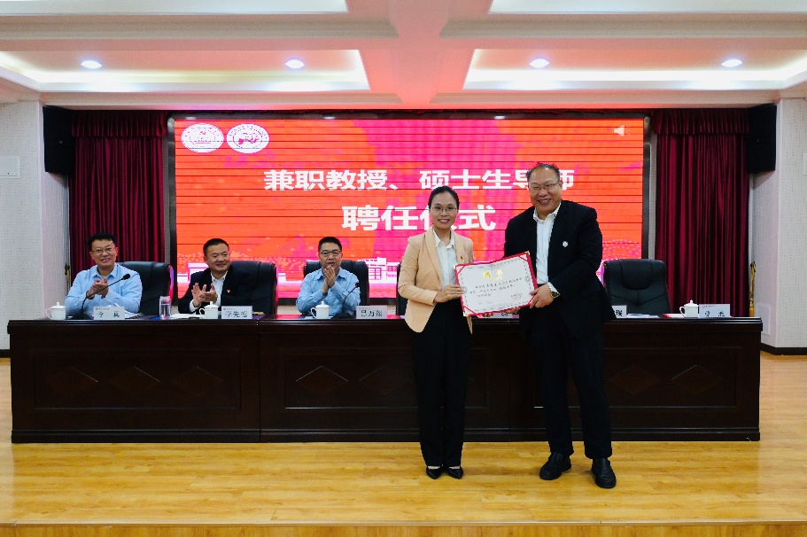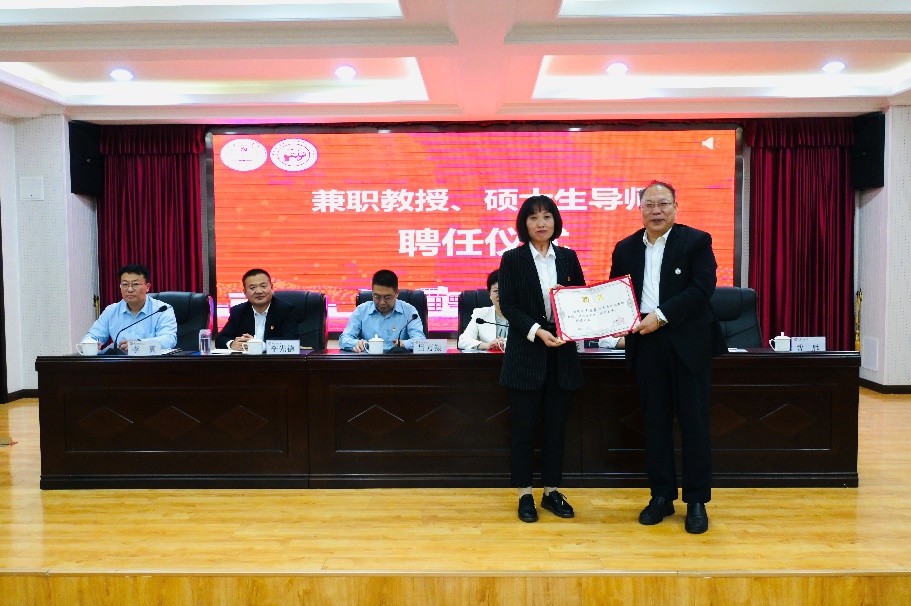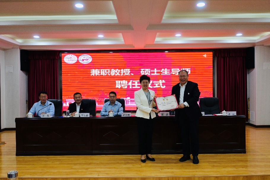 青岛科技大学马克思主义学院院长曹胜分别为梁蕊、郭本勇、庞雪莲、朱爱霞4位兼职教授颁发聘书。