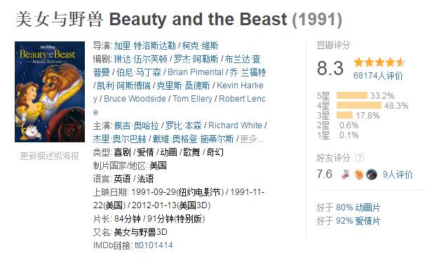 其实对于我们这种有(zhi)审(kan)美(lian)的影迷来说,这位豆瓣网友对[美女与野兽]最质朴的点评实在说出了颜控的心声: