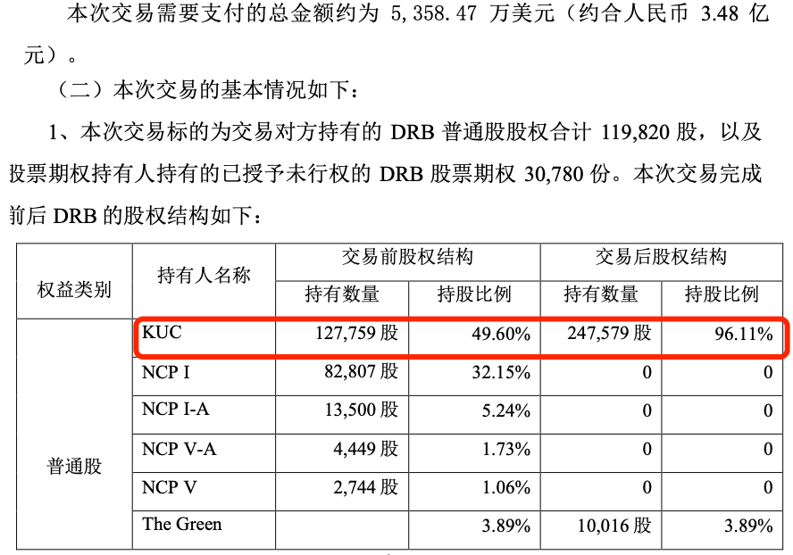 此后,金达威再一次增持DRB。2016年5月,KUC签署了增持DRB股权的《股权购买协议》,通过5358.47万美元(约合人民币3.48亿元)的价格,对DRB的持股比例进一步提高至96.11%。