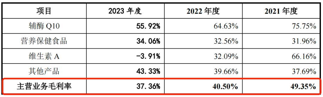 仍值得注意的是,此次募资的核心产品辅酶Q10的毛利率一直在下滑状态。