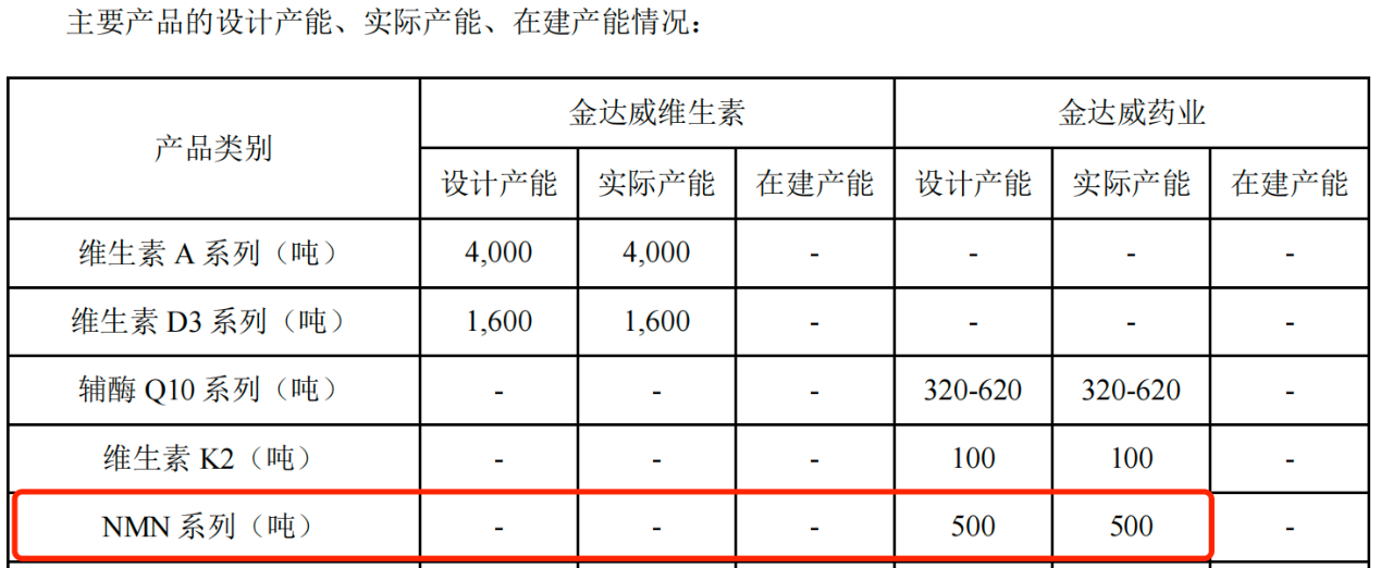 而金达威2023年财报显示,NMN系列产品的实际产能已经达到500吨。