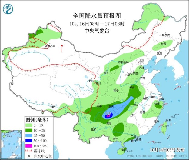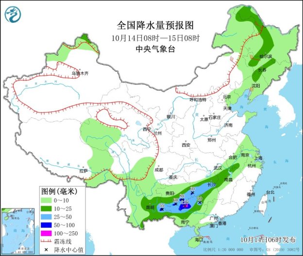 另外,未来三天,青藏高原东部、云南、贵州、广西、湖南、江西等地多阴雨天气,其中,云南东部、贵州中南部、广西北部、湖南中西部、江西中北部等地的部分地区有中到大雨,局地暴雨或大暴雨。16日起,中东部地区也将迎来一次大范围降水天气过程。