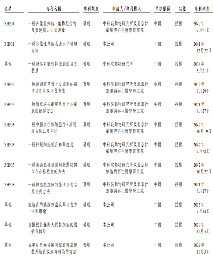 截至2024年9月27日,泽辉生物拥有对公司业务重大的专利共计32项,其中20项专利仍未获授权,剩余已获授权的专利中,只有4项专利的专利权人为泽辉生物,其余项目的专利权人为中科院动物研究所及北京干细胞与再生医学研究院。并且剩下的四项专利中,关于核心产品ZH901的相关专利只有1项。