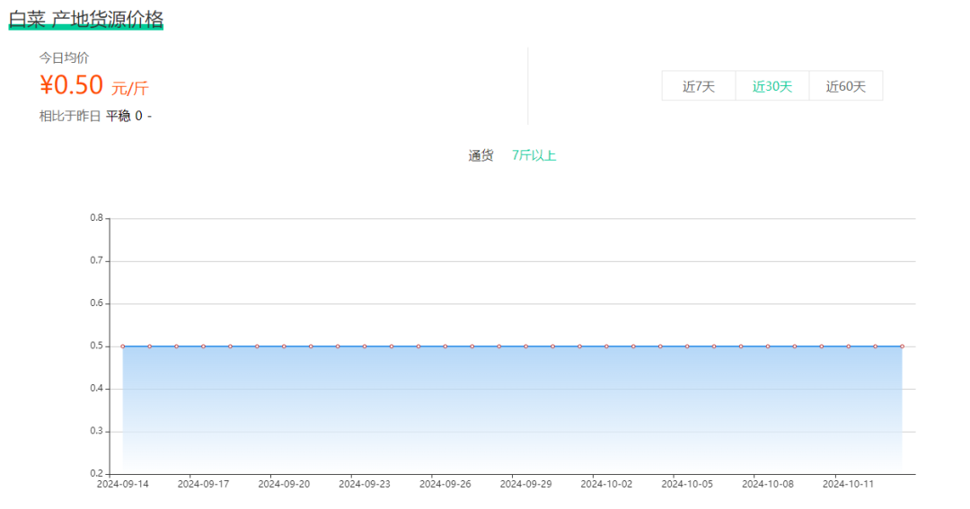 作为对比,9月至今,国内白菜价格相对平稳,产地价整体维持在0.4-0.5元之间。