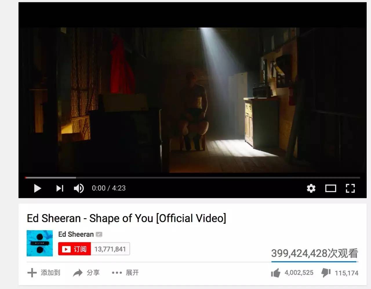 Youtube上《Shape of You》播放次数截图