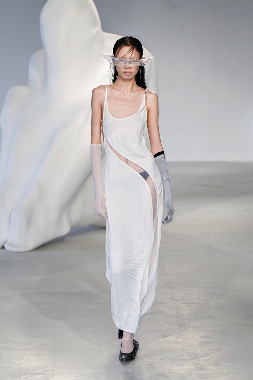 这场名为“The Specimen of Time”的秀展,是weiræn的第三个成衣系列,也是该品牌第二次登上海时装周。设计师魏然从琥珀标本中汲取灵感——犹如气泡瞬间将某个时刻封存——并通过这个系列展现这些珍贵的瞬间。