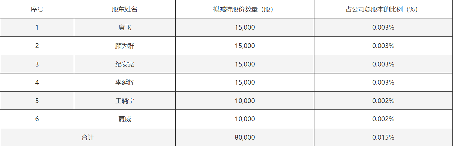 值得注意的是,公司10月11日曾披露高管减持公告。公司副总经理唐飞、顾为群、纪安宽、李延辉、王晓宁、夏威因个人资金需求原因,拟在公告后15个交易日后的3个月内合计减持不超8万股公司股份(在此期间如遇法律、法规规定的窗口期则不减持),占公司总股本的0.015%。具体减持详情见下图。