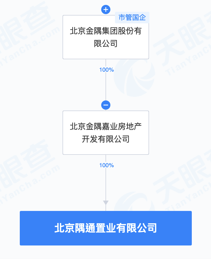 天眼查APP显示,近日,北京隅通置业有限公司成立,法定代表人为王明昌,注册资本4亿元,经营范围包含:房地产开发经营;非居住房地产租赁。天眼查股权穿透显示,该公司由金隅集团间接全资持股。