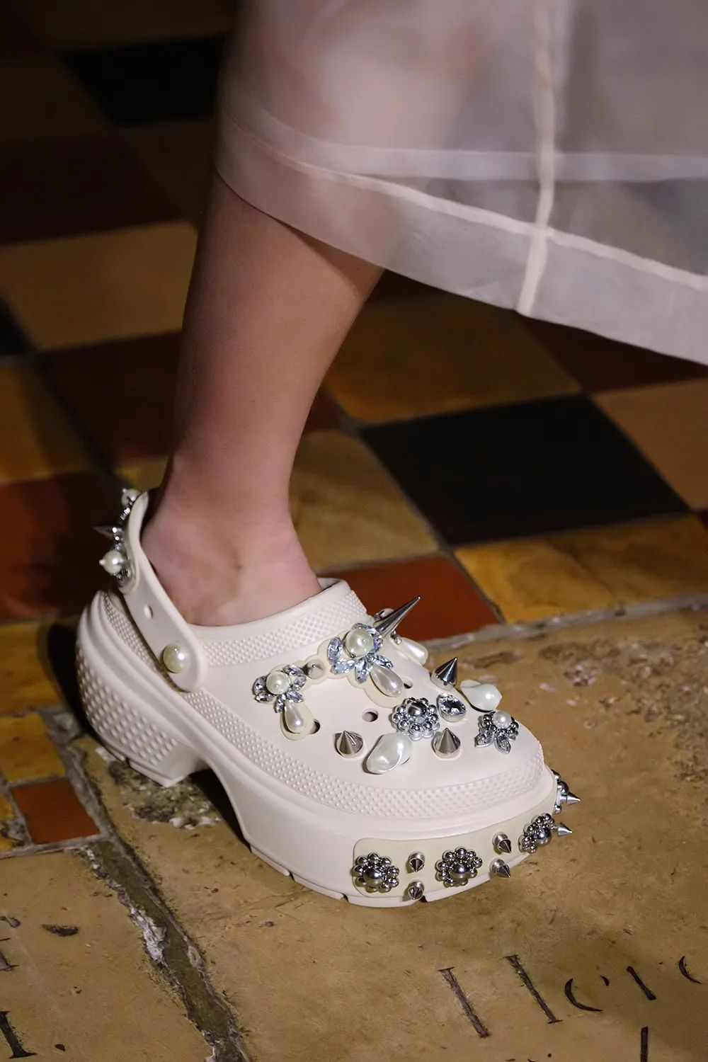 近日,Crocs携手奢侈时尚品牌Simone Rocha推出新一季联名系列鞋款,新一季联名系列以人鱼洞洞鞋、雪屋洞洞鞋、经典暖棉洞洞鞋以及泡芙雨靴为设计蓝本,释出四款融入Simone Rocha标志性的精致珍珠与繁复花卉元素的时尚鞋款。