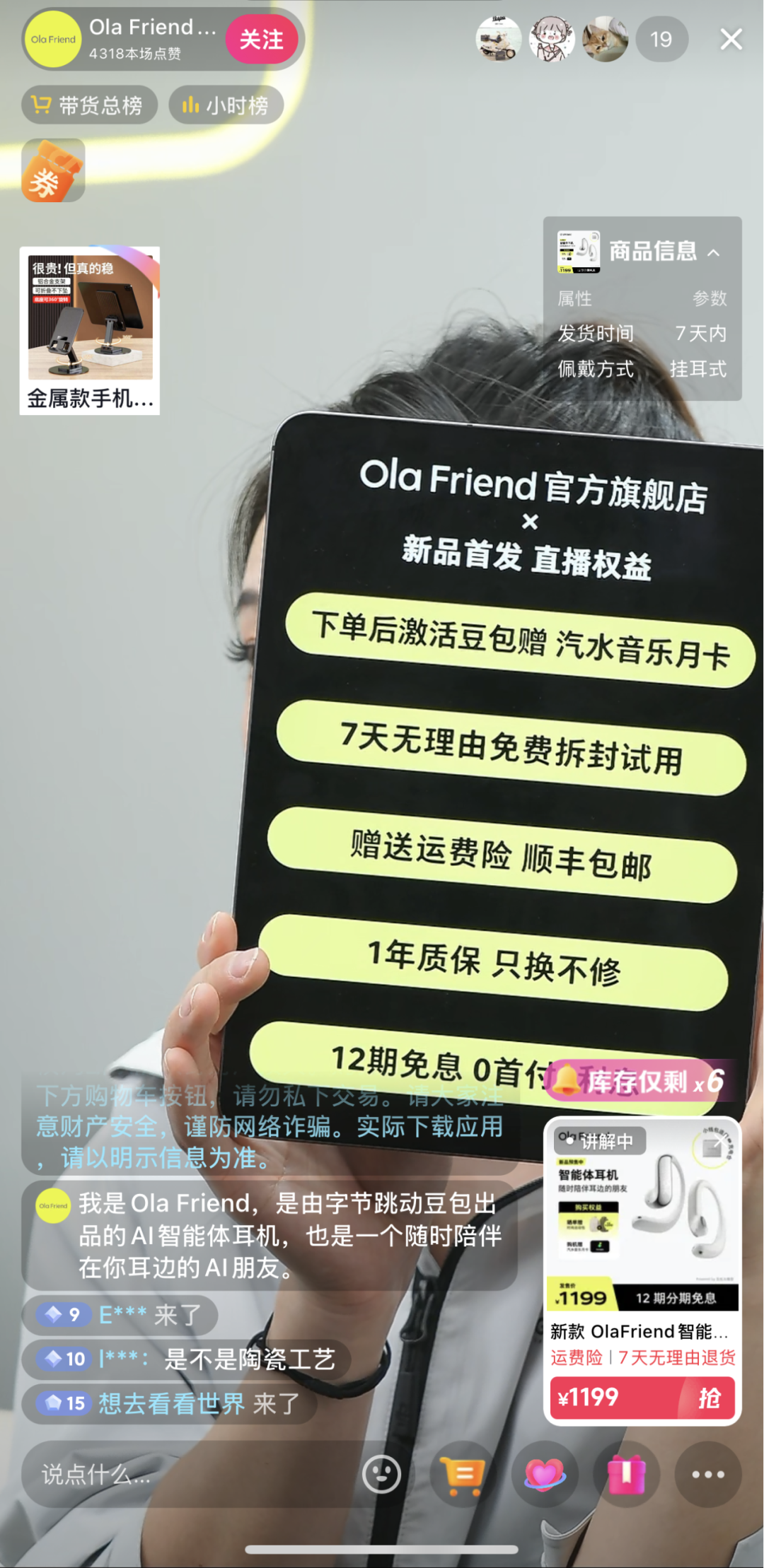 图:Ola Friend官方直播间
