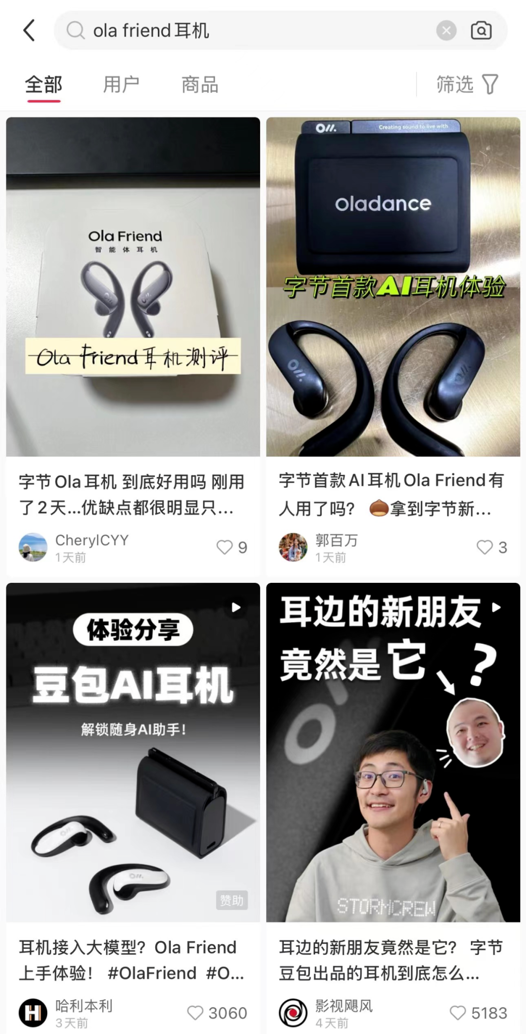 最后,AI耳机产品也更适合互联网营销。尽管产品仍在预售期,但抖音和小红书等平台上已有多位博主发布体验测评内容。“Ola Friend”不仅延续了Oladance选择运动时尚博主展现耳机外部、功能优势的策略,还增加了数码博主等对大模型应用的呈现,一些博主引用了“科幻电影照进现实”的话术。