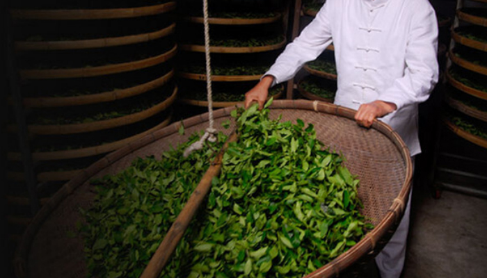 这一时间段鲜叶中的酶促作用使部分蛋白质分解为氨基酸;糖类物质经氧化形成各种不同的有机酸,如琥珀酸、苹果酸等,组成了芳香物质;邻醌引起氨基酸的脱氨和脱羧,形成醛类;胡萝卜素的氧化降解也形成了一些香气,这些酸、醇、酮类物质,也能相互转化,最后共同构成了复杂型香气。到这里,铁观音的香韵和口感就算基本成型。